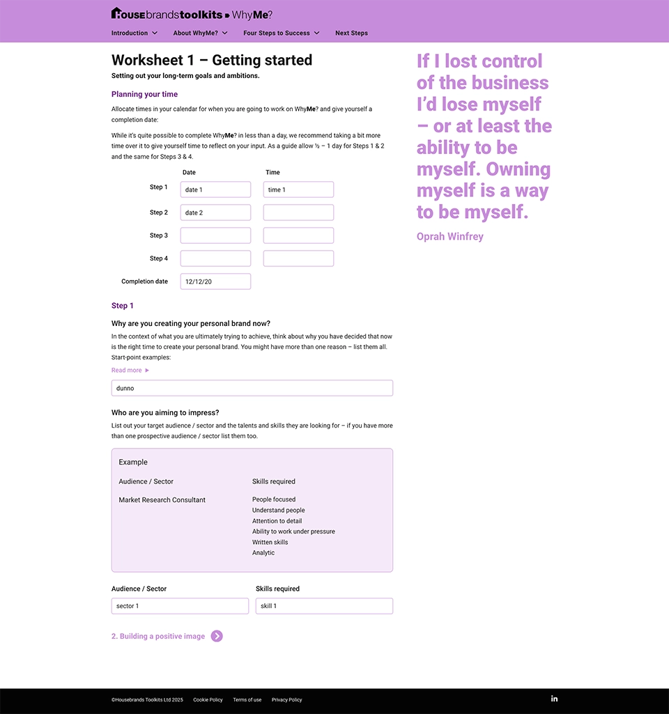 Of course, you could create your own programme by searching the web, reading lots of books and articles, attending a myriad of different webinars and personal brand training sessions but the joy of WhyMe? is that all the hard work has been done for you. You simply need to follow the instructions and add in your own personal data when asked.